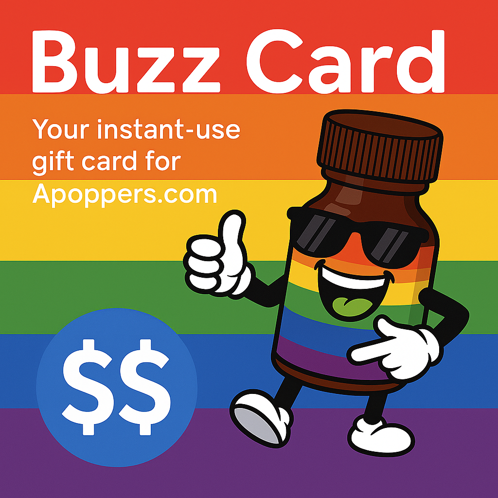 Redeem at either APoppers.com or VegasPridePostions.com